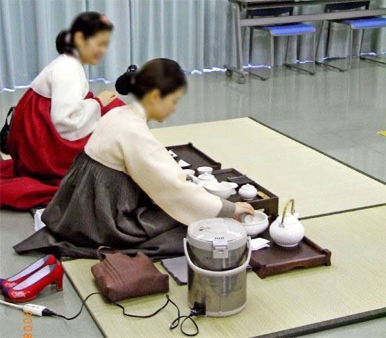 韓国茶道は自分でステンレス魔法瓶から急須にお湯注いで淹れて自分で飲んでた。