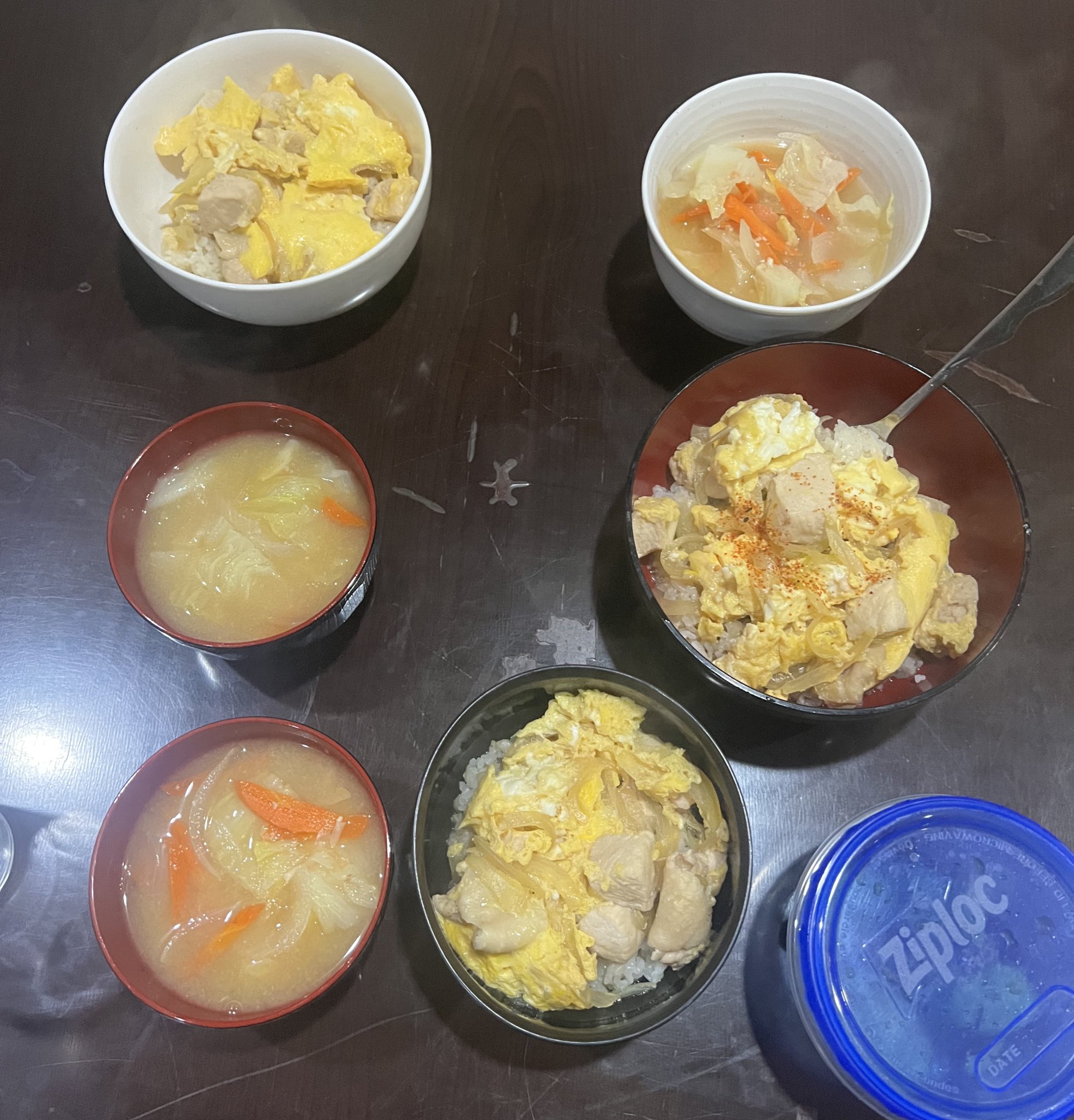 昔作った親子(と冷蔵庫の余り)丼
